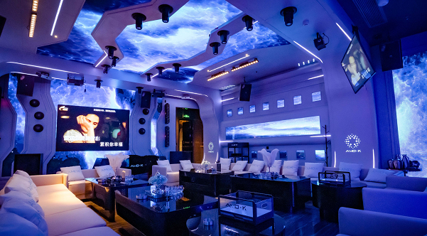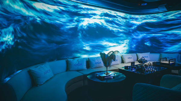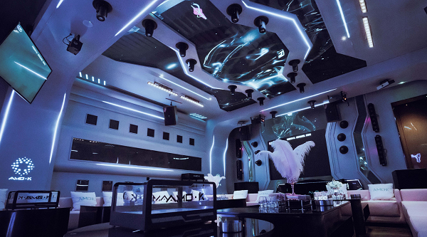 炫酷的内外环境,颠覆大家对KTV的刻板审美印象,高低饱和度的颜色、巨幕、投影、VR、各式灯光的加成,一时间,AMOK派对KTV首先就是外貌上击中了年轻人的心!