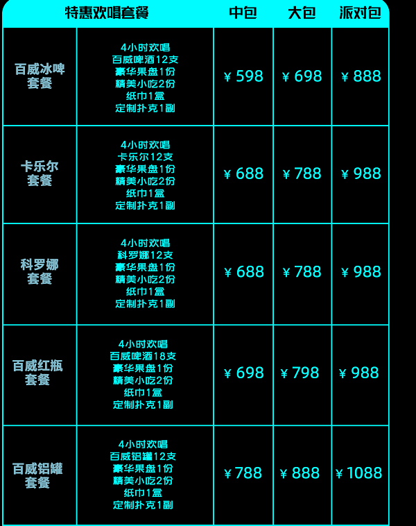 沉浸式的声光电体验,让Party K潮酷到底。不仅如此,Party K的出现相较于传统量贩KTV更融合了酒吧、夜间娱乐的亮点,如 DJ、GOGO、专业一对一管家,表演不断,仪式感、体验感、排面排场十足!